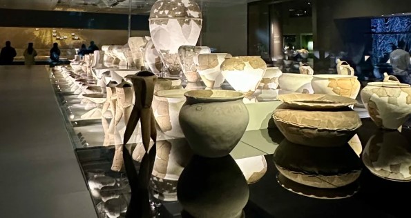 刚进三星堆不久的时候,觉得古蜀文化文明发展很可能超过了古中原!但随着参观的深入,发现并不是这样!三星堆之所以吸引人是因为这些面具的造型比较突兀,让人觉得新颖。之前没有见过,加上没有文字记载,所以显得格外神秘!但先说陶器,从型上来说,和古中原接近,但审美修饰上不如古中原,仅仅是刻了一些简单的纹路装饰!但这时其它地方出土的文物已经有了手绘!再说青铜器,从精美程度,工艺,使用场景还是略逊于古中原!所以我的感觉是,古蜀文明整体发展的进度要晚于古中原!