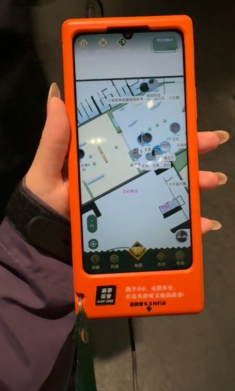 去了三星堆,博物馆的智慧导览器就是上图这样的,有一个地图导览功能,但是文物讲解需要大家手动在列表里选择文物播放,目前官方的讲解器并没有顺序,自动定位功能几乎没有太大帮助!然后讲解内容根据某书反馈也是比较简单,与馆内的人工讲解比较肯定是不足人工讲解的十分之一。推荐大家作为备选方案,如果需要讲解器也建议用官方的微信小程序,比这个讲解实惠!